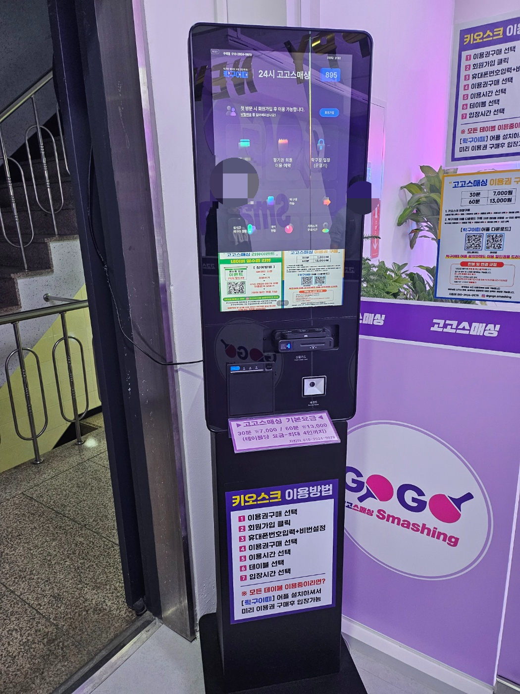 무인 탁구장이다보니 상주하는 직원이 없어서 키오스크로 결제를 해야만 문이 열리더라구요.