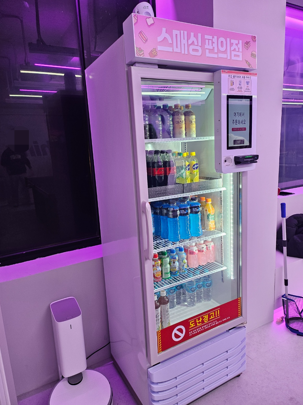 고고스매싱 안에 무인 냉장고가 있어서 음료수도 사먹을 수 있게 되어있어요.