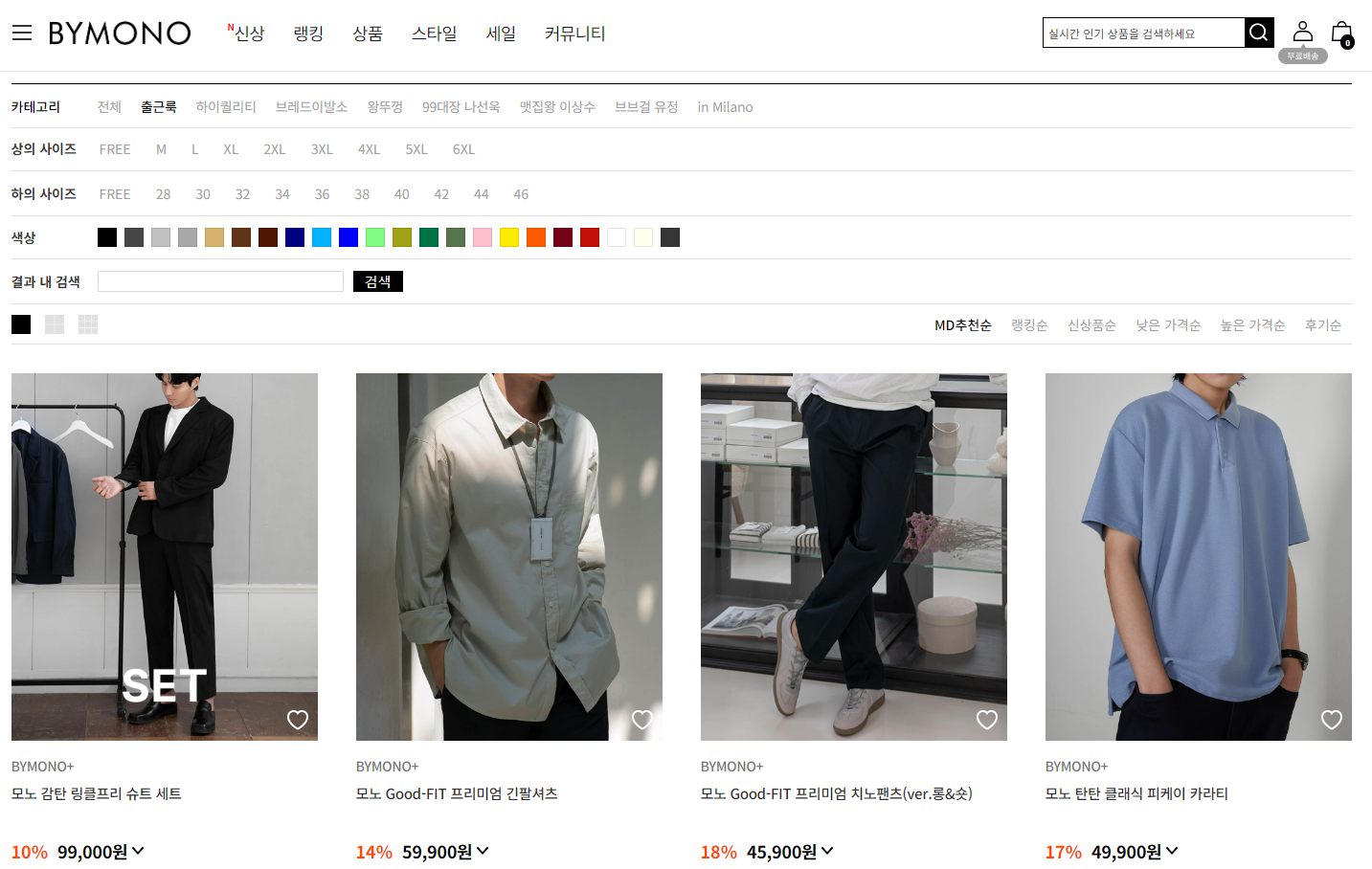바이모노 남성 빅사이즈 쇼핑몰은 원하는 옷을 찾기 편하게 홈페이지를 구상해서 내가 원하는 디자인, 사이즈, 색상을 지정해서 검색 할 수 있어 굉장히 편합니다.
