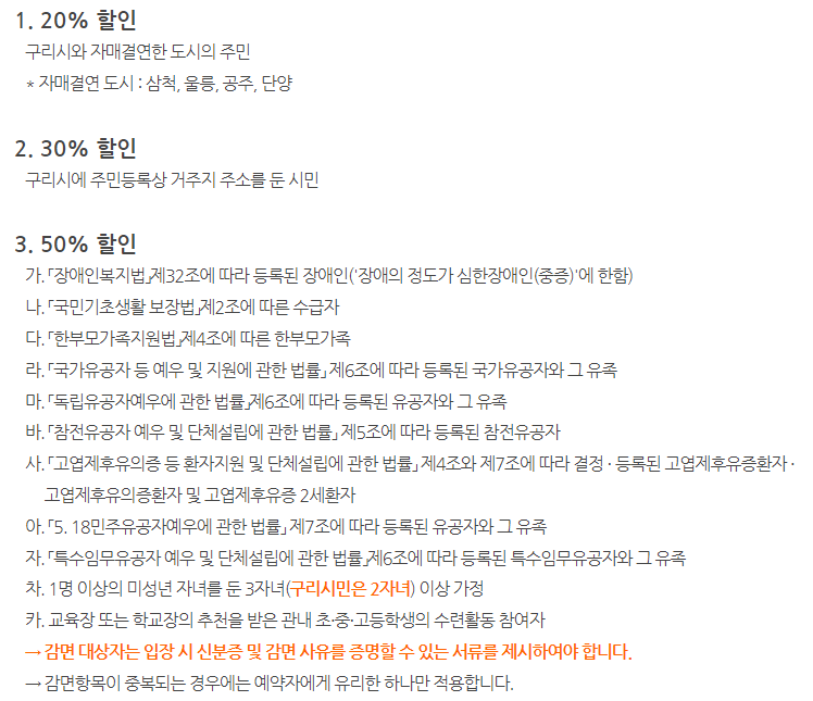 | 구리시민 우선 예약 기간 | 전월 1일 ~ 10일 |