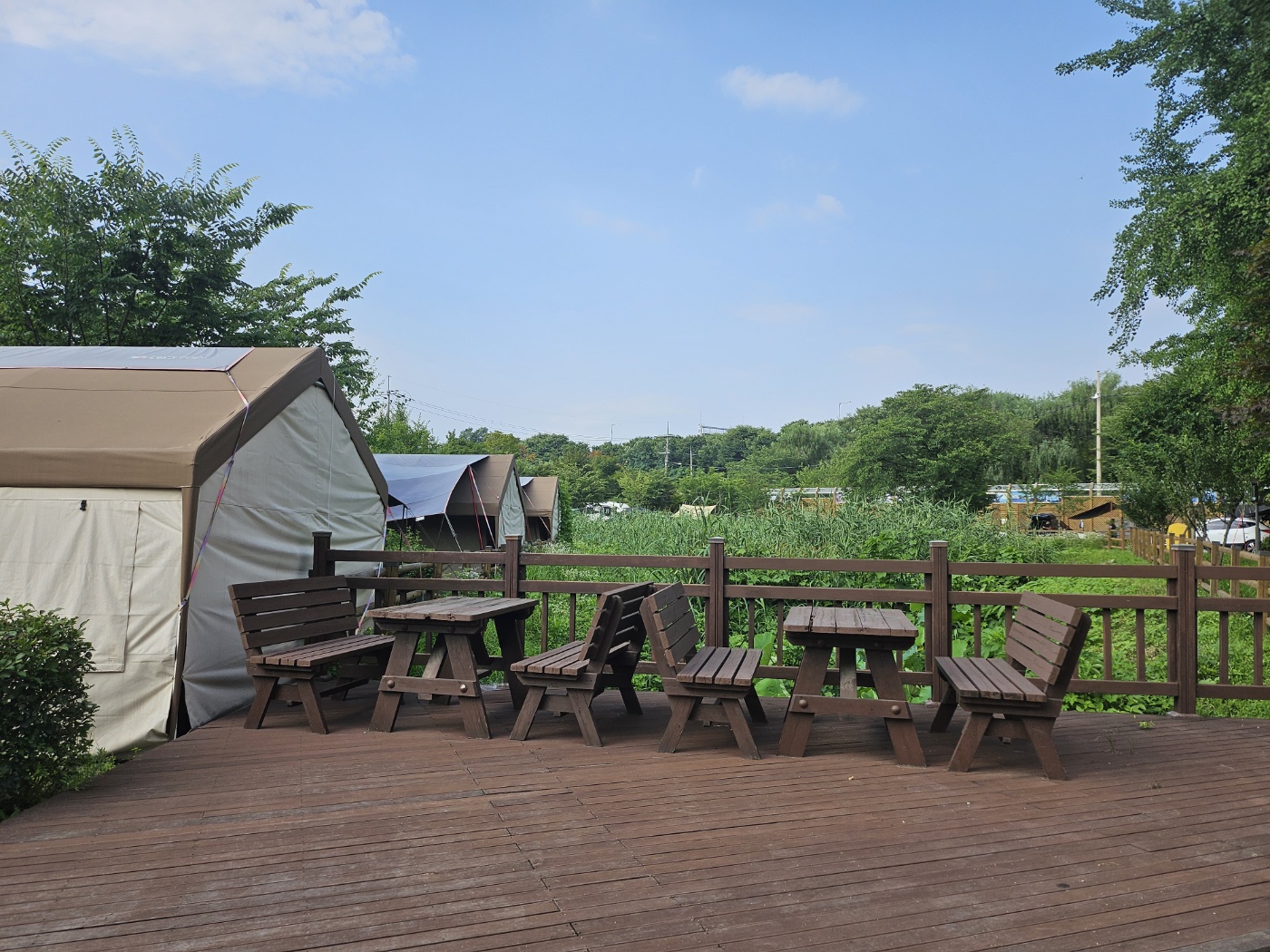 | 장점 | 1. 가족단위 이용객이 많아 매너타임이 잘 지켜진다. 2. 서울 근교에 위치해 거리적 부담이 적다. 3. 이지캠핑, 이지바베큐 사이트가 있어 텐트 없이도 캠핑과 야외바베큐를 즐길 수 있다. 4. 기본 이용인원이 많고, 추가 차량 주차비용이 없다. 5. 이용요금이 저렴하다. 6. 뷰가 좋고 시설이 깔끔하다. 7. 평일에 자리만 있으면 저렴한 캠프닉이 가능하다(12000원) |
