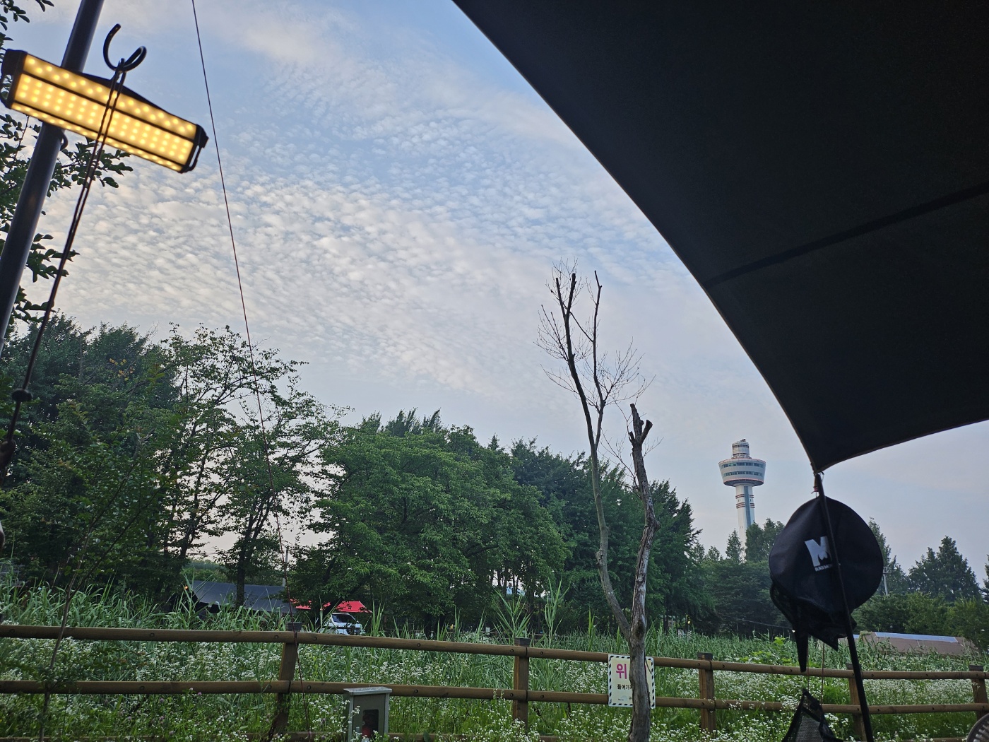 제가 이용했던 C1사이트에서는 구리타워가 잘 보여서 밤에 뷰 맛집이었지만 도로에 가까워서 도로소음이 좀 있었어요.