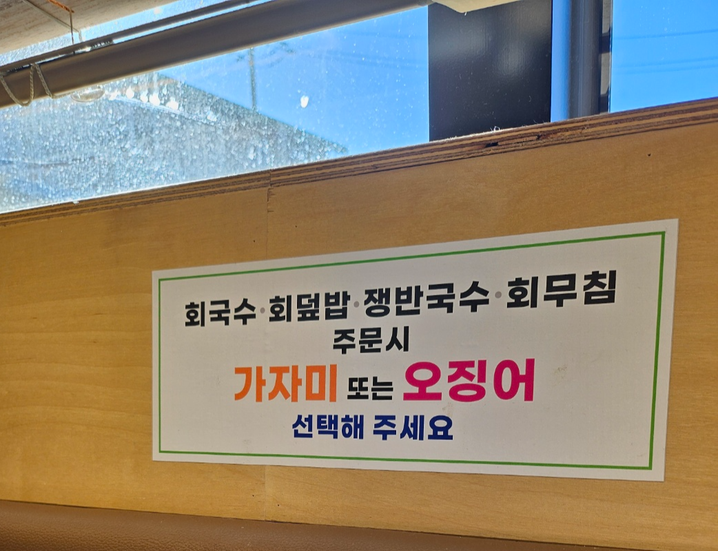 회종류는 가자미와 오징어 중에 선택할 수 있고 저희는 오징어로 선택했어요.