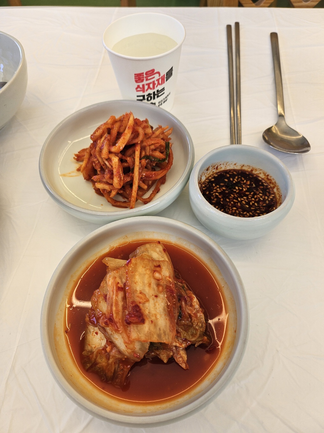 김치와 감자전에 찍어먹을 간장도 같이 나왔어요.