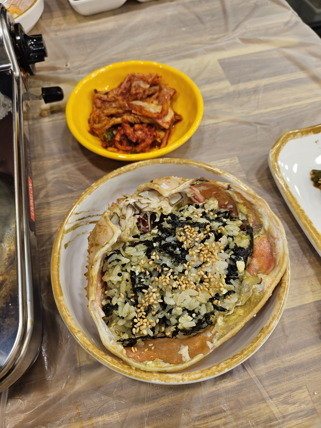 대게를 어느정도 다 먹어가면 게딱지 비빔밥도 해주세요.