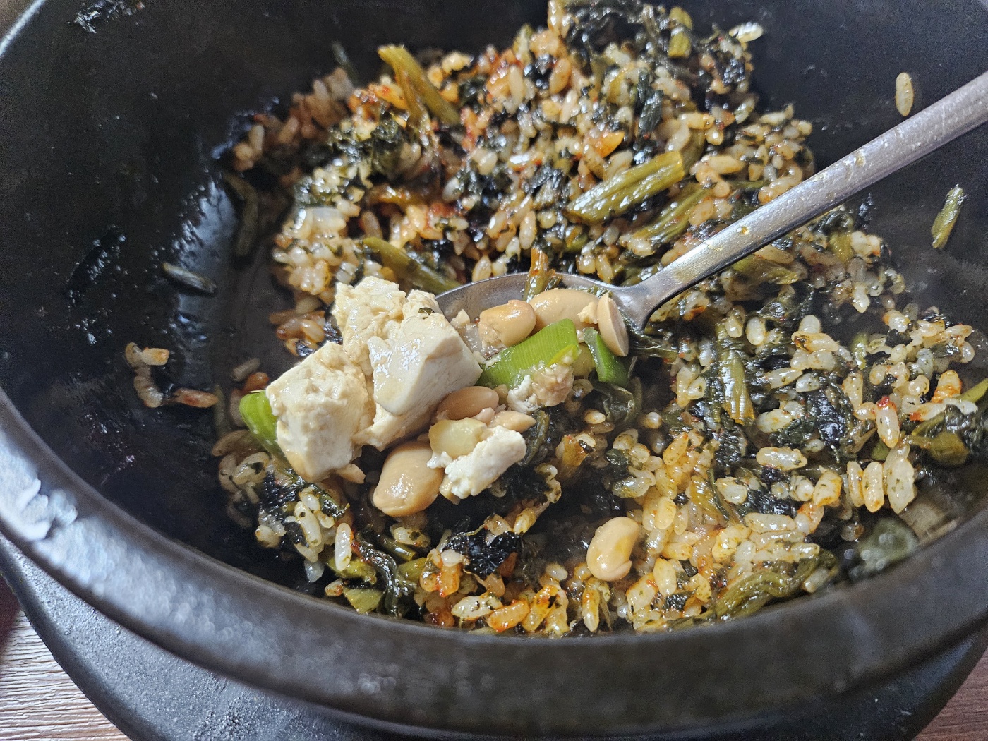 시레기 밥에 청국장 삭삭 비벼서 먹으니까 진짜 너무 너무 맛있었어요.