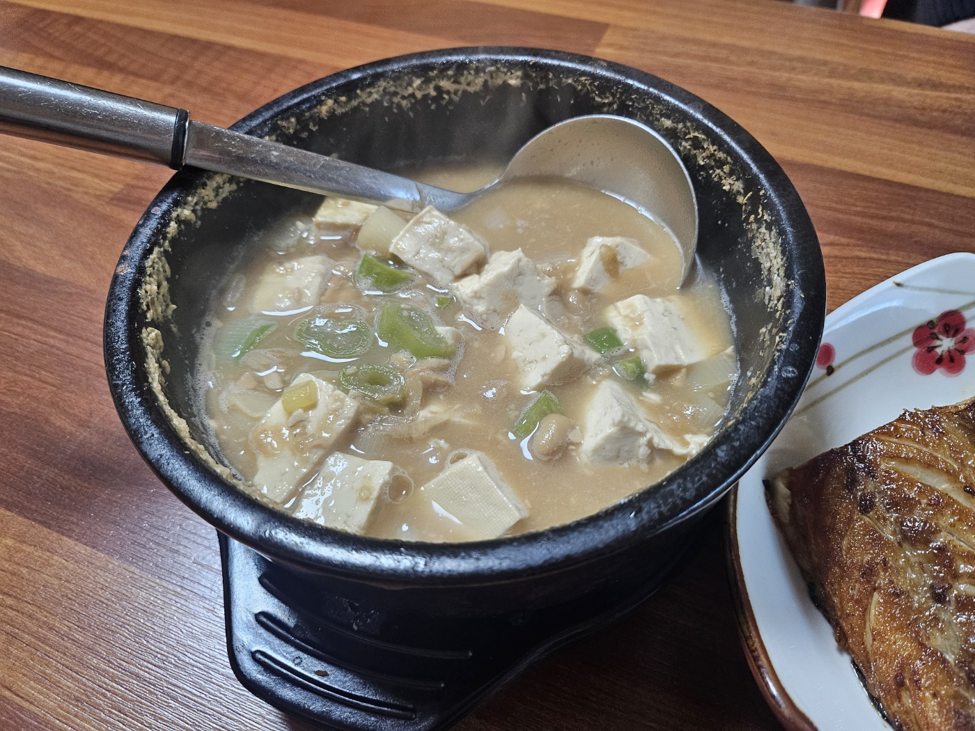 세지 않은 간에 청국장에 두부도 많이 들어가 있어서 고소하고 담백한 청국장이었어요.