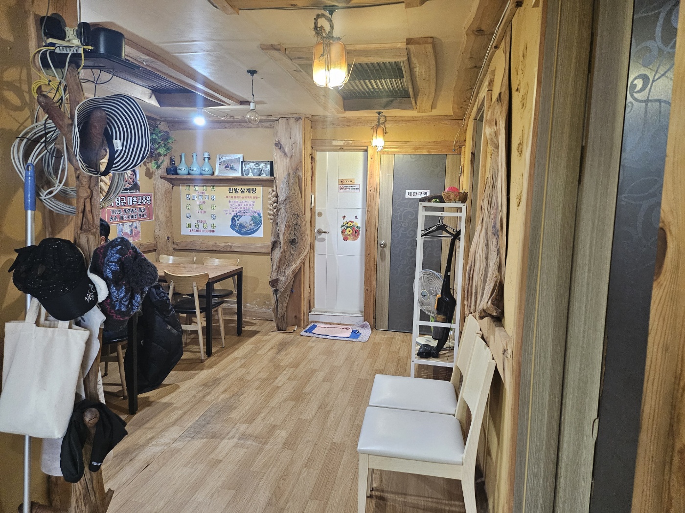 방이 여러개 있어서 방과 거실에 4인 테이블을 두었고 신발은 입구에서 벗고 들어가야해요.
