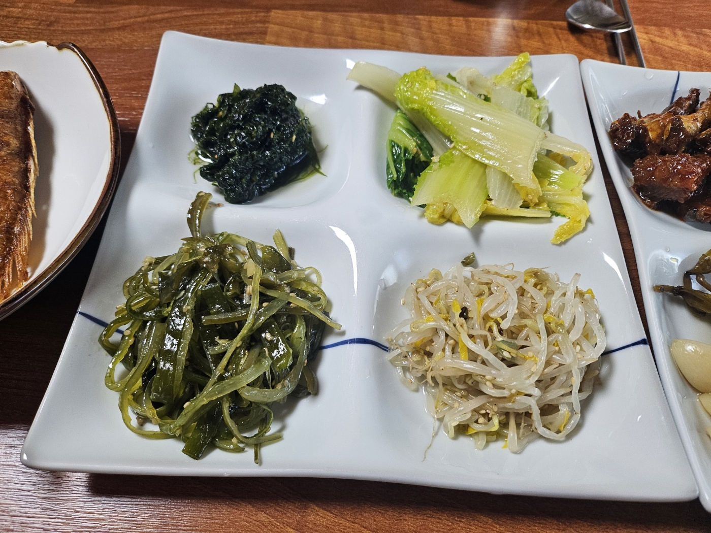 밑반찬과 생선구이까지 나오니 식탁이 풍성해지더라구요~!