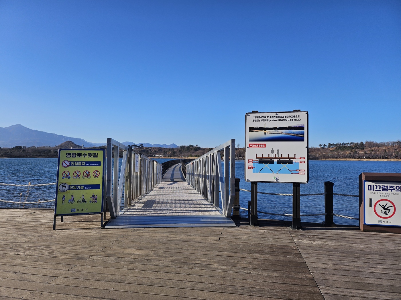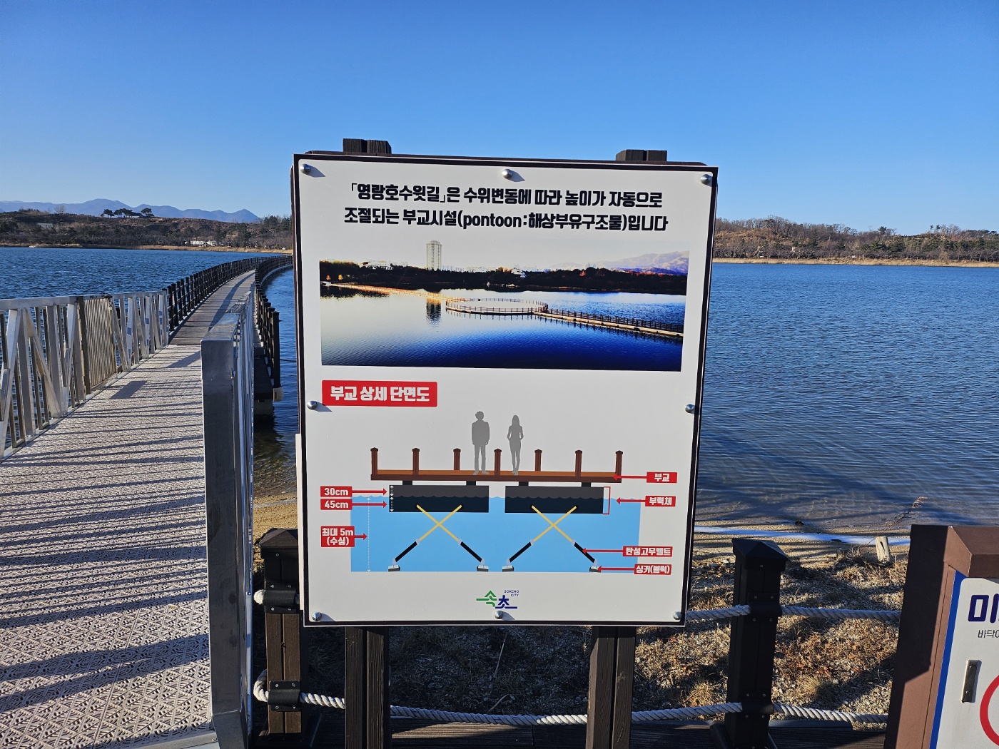 영랑호수윗길은 수위변동에 따라 높이가 자동으로 조절되는 부교시설이라고 합니다.