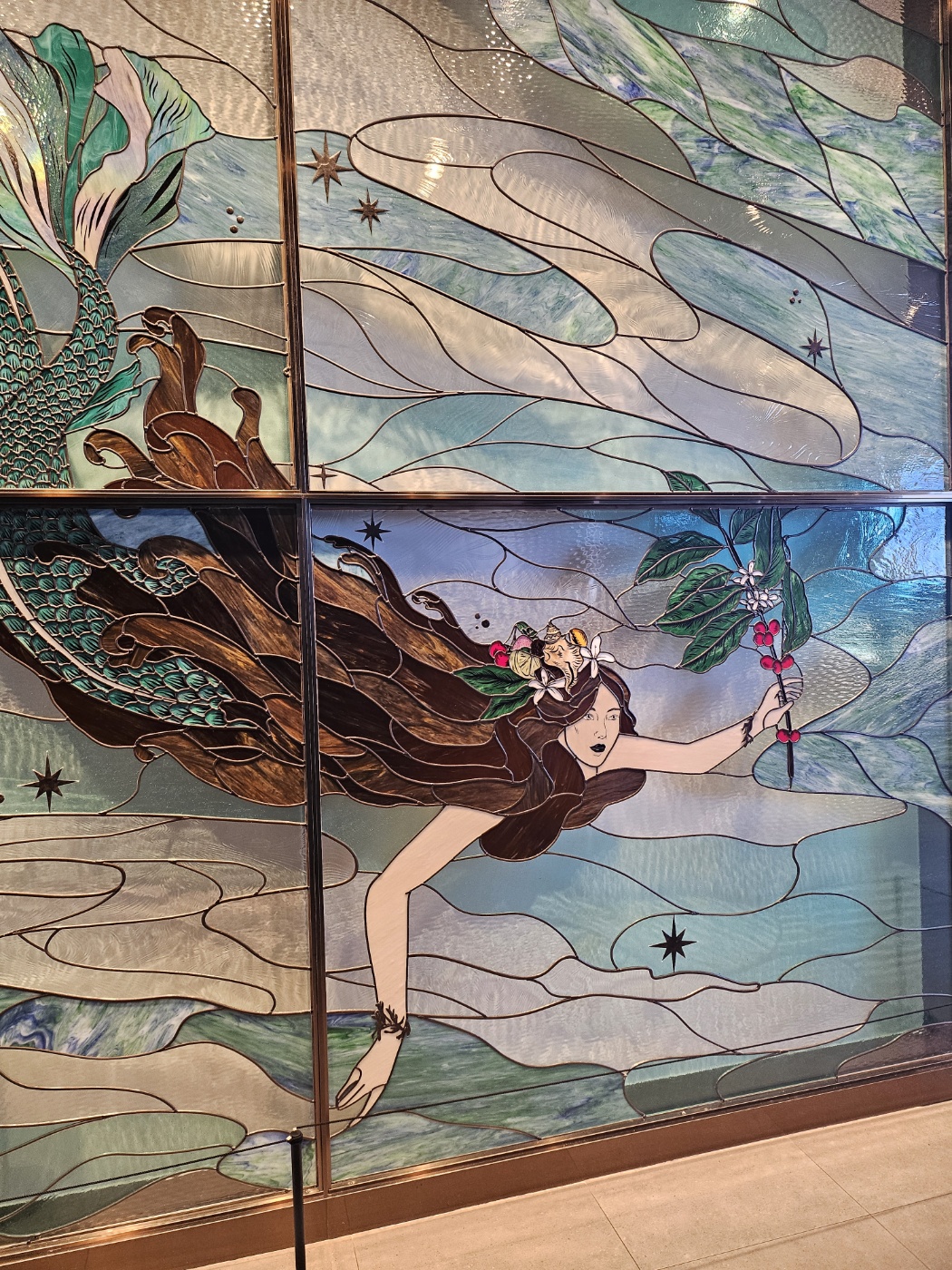 스테인드글라스로 만든 사이렌이 환영해줍니다.